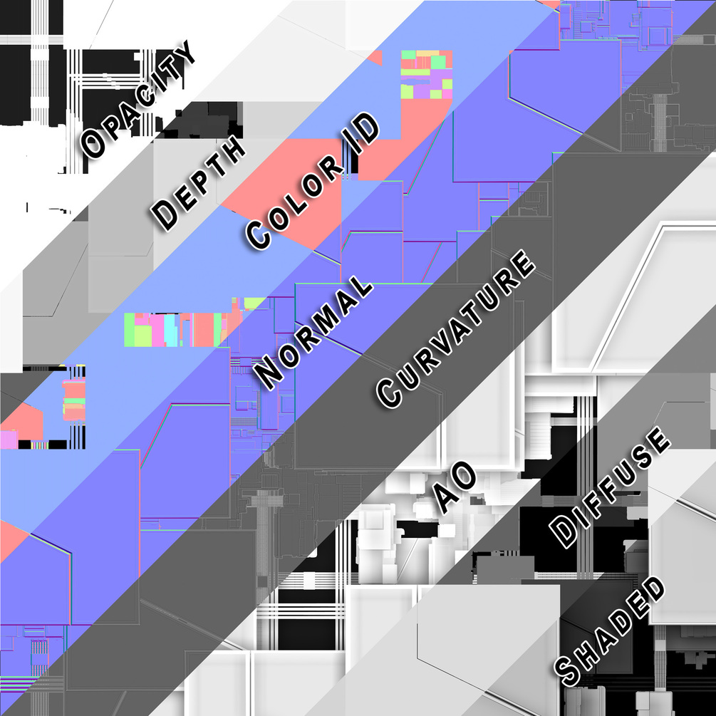 55 4K Tillable Greeble Material Sets for use in 3D Applications. Each set includes .TIFF and .JPEG versions of Diffuse/Albedo, Ambient Occlusion, Curvature, Normal, Material ID, Depth/Displacement, Rendered/Shaded, and over Half the Sets include Opacity Maps.