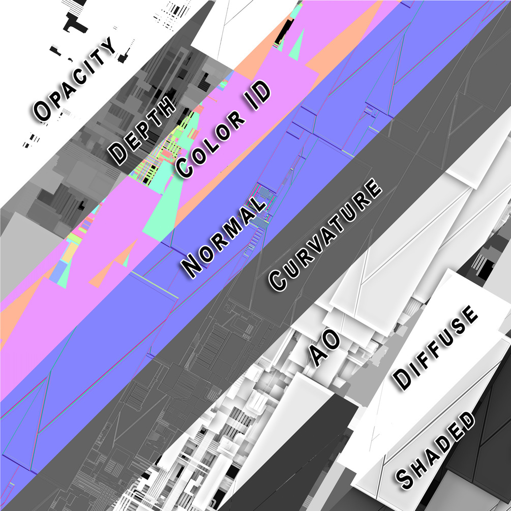 55 4K Tillable Greeble Material Sets for use in 3D Applications. Each set includes .TIFF and .JPEG versions of Diffuse/Albedo, Ambient Occlusion, Curvature, Normal, Material ID, Depth/Displacement, Rendered/Shaded, and over Half the Sets include Opacity Maps.